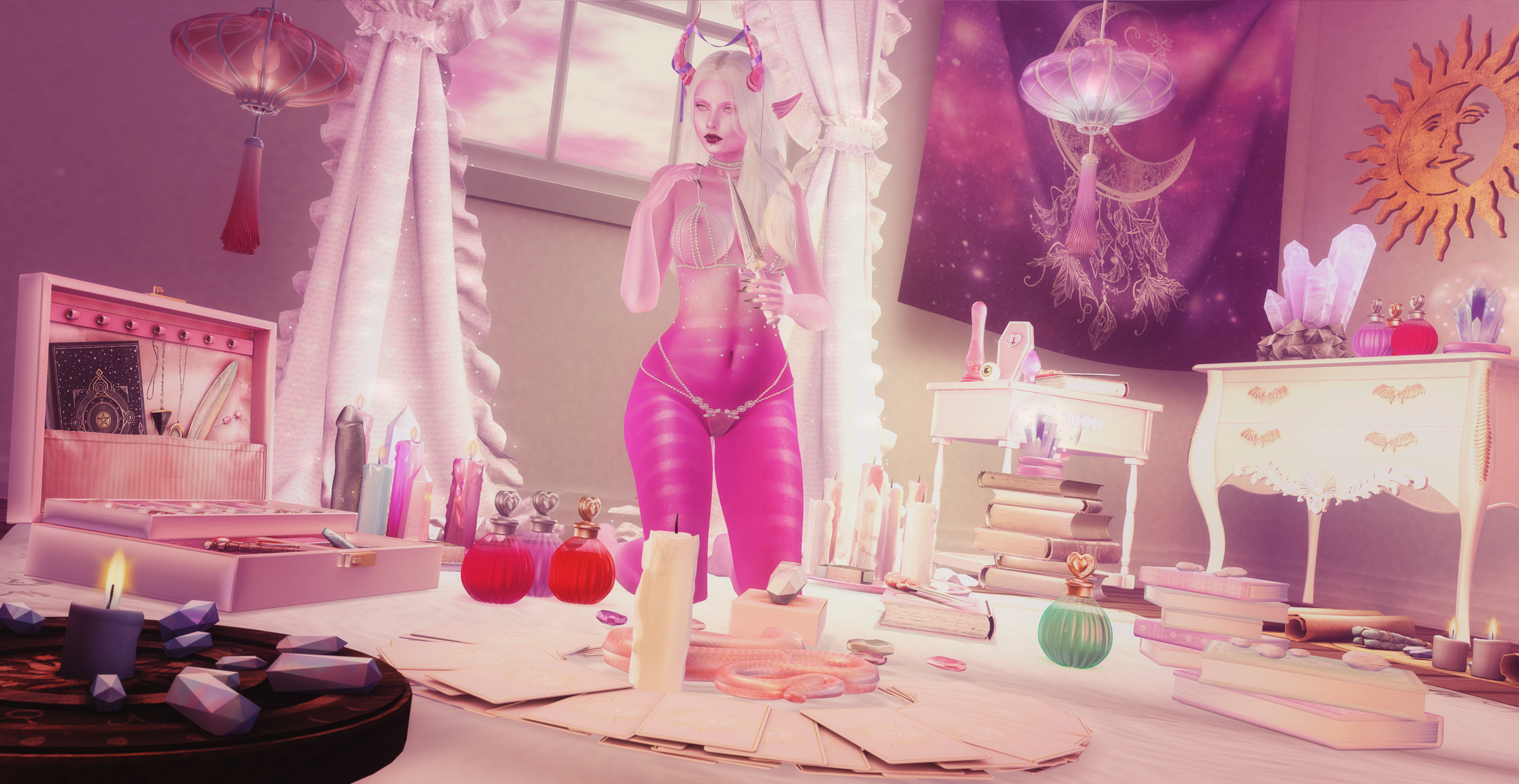 → Kinky/Witchy mesh accessoire and deco Set / Materials enabled / 18 Commons + 1 RARE / 2-7 LI / Set includes 6 holdabels/wearable Accessoires (knifes, earrings and wand) / Hold animation on/off for Accessoires per click / Set also includes 13 deco and furniture pieces / NoCopy/Mod/Trans
