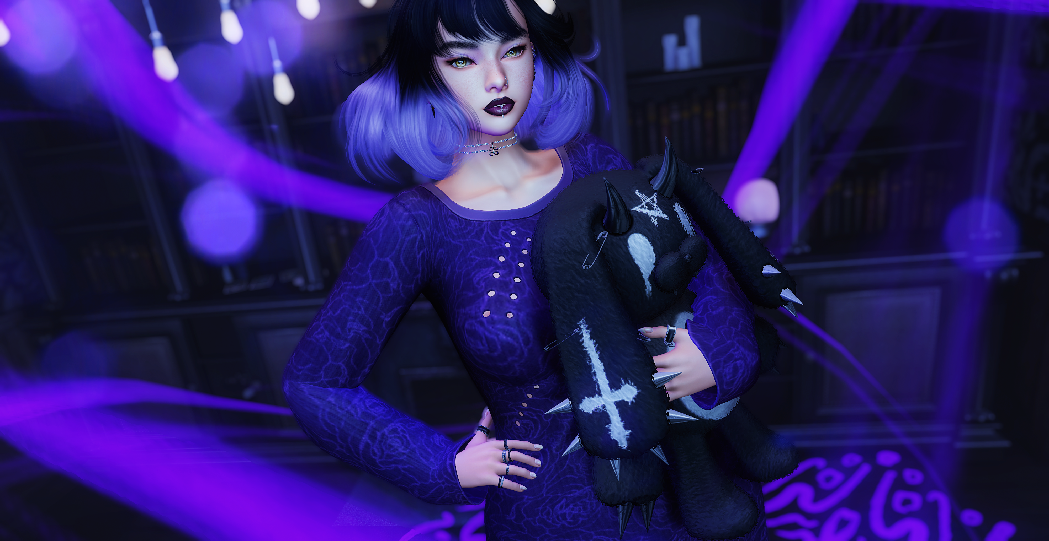 → Goth/Dark themed unrigged choker with resizer / Includes 3 versions (Peanut/RLV, Whim/RLV and unscripted) and HUD / Original mesh and textures / Materials enabled / Fatpack only! / HUD features 9 metals for 4 faces (chain top, chain botom, cross and rear clasp) / Copy/Mod/NoTrans